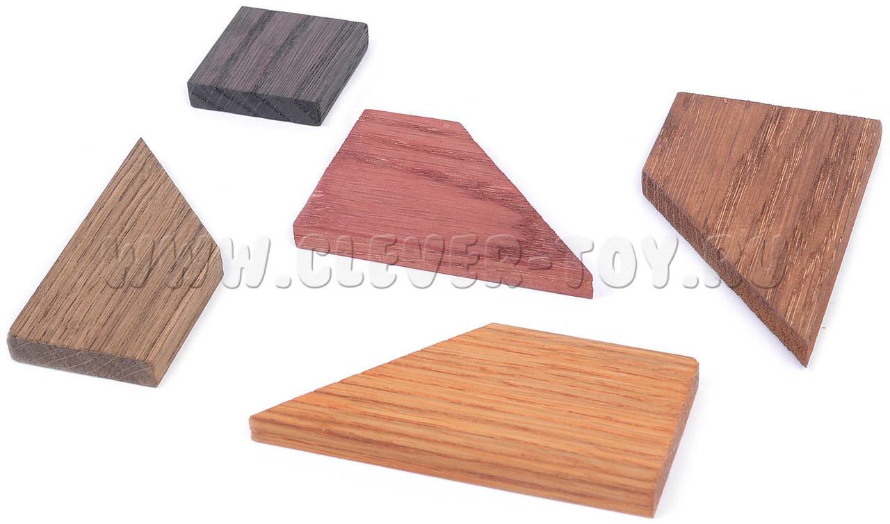 - 4 прямоугольных трапеции из древесины разного цвета,