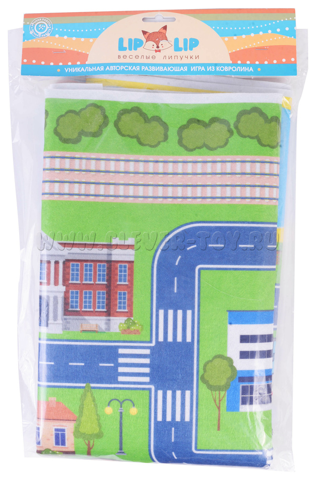 - игровое поле большого размера, выполненное в виде коврика с нарисованным на нём городом с дорогами, мостами, деревьями, зданиями;