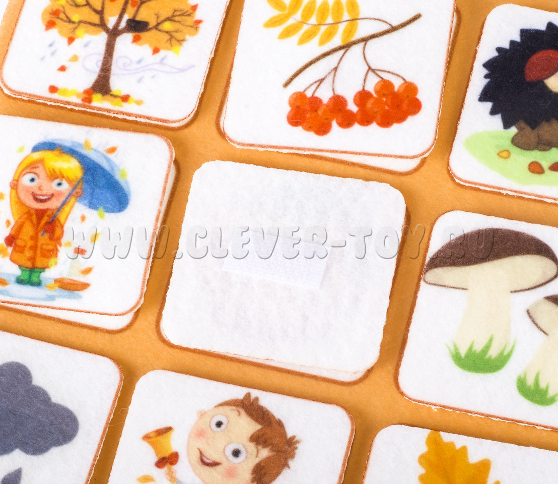 - маленькие фигурки на липучках с изоброжением деревьев, мальчиков, девочек, птиц, ягод, солнца, снежинки и т.д..