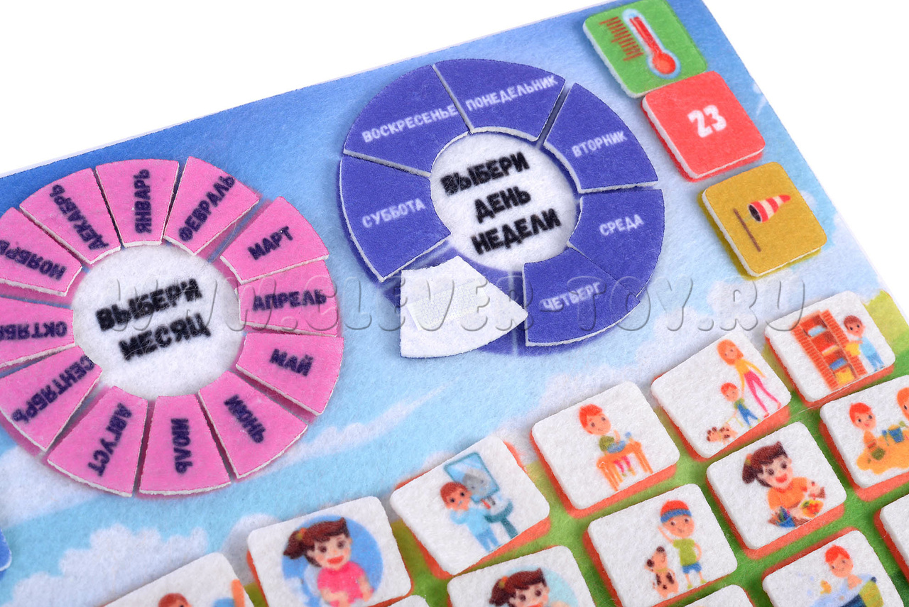 - Набор из 110 деталей (эмоции, осадки, ветер, температура, цифры, дни недели, месяцы, сезоны, распорядок дня, звездочки),
