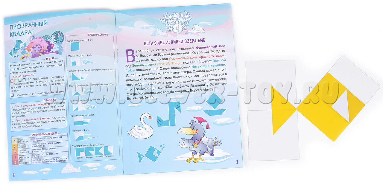 Головоломка "Прозрачный квадрат" помогает детям подготовиться к школе, развивает логику и творческое мышление. Игра включает разные уровни сложности, новые схемы и задачи, позволяет повторять рисунки, придумывать свои последовательности и соревноваться. Ребенок учится сортировать и сравнивать фигуры по форме, размеру, складывает из них квадраты, конструирует по схемам и собственному замыслу.
