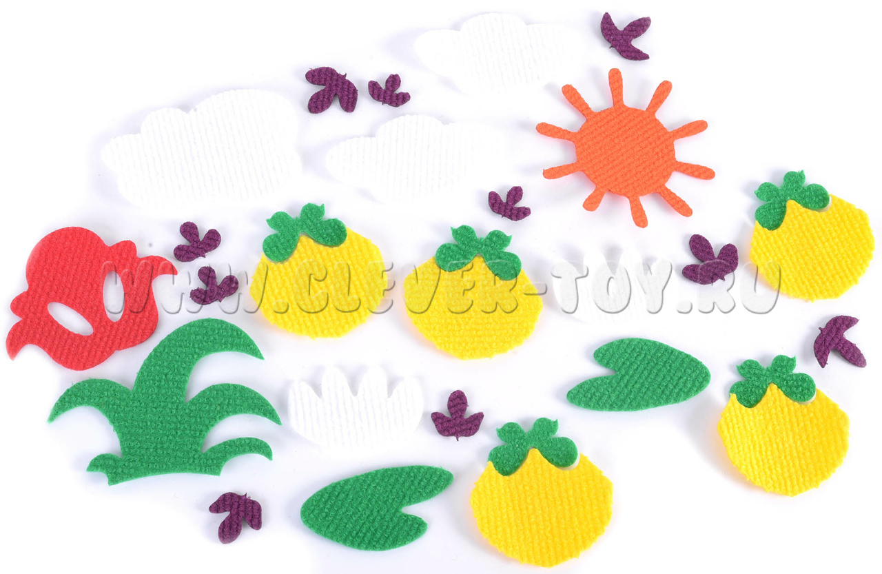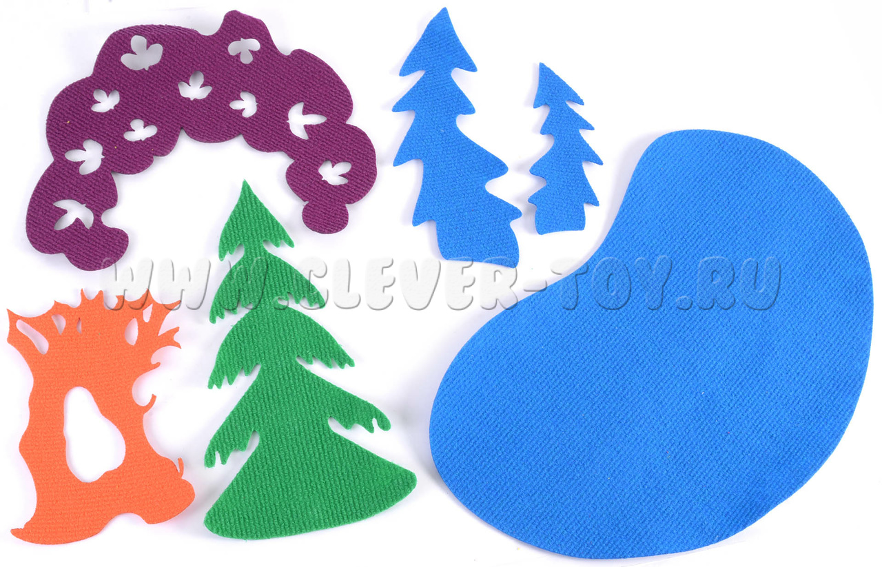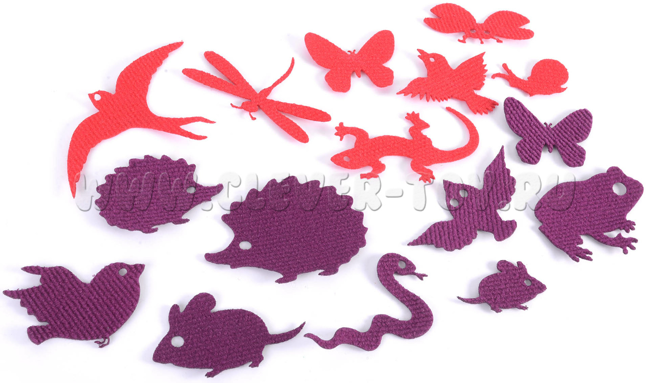 - Съёмные элементы «на липучках» - 140 шт. размером от 2 до 60 см! (животные, насекомые, деревья, листья, цветы и др.)