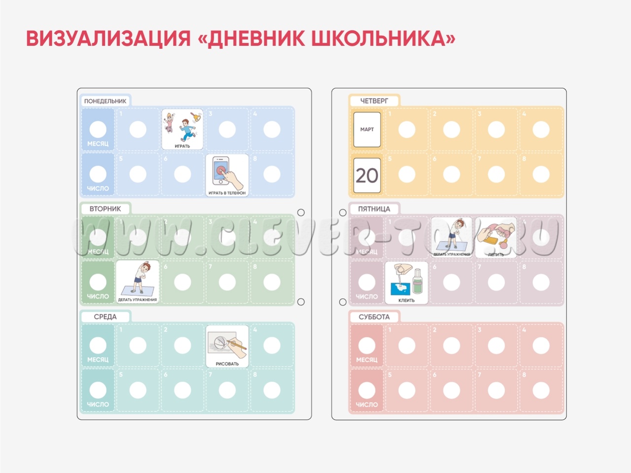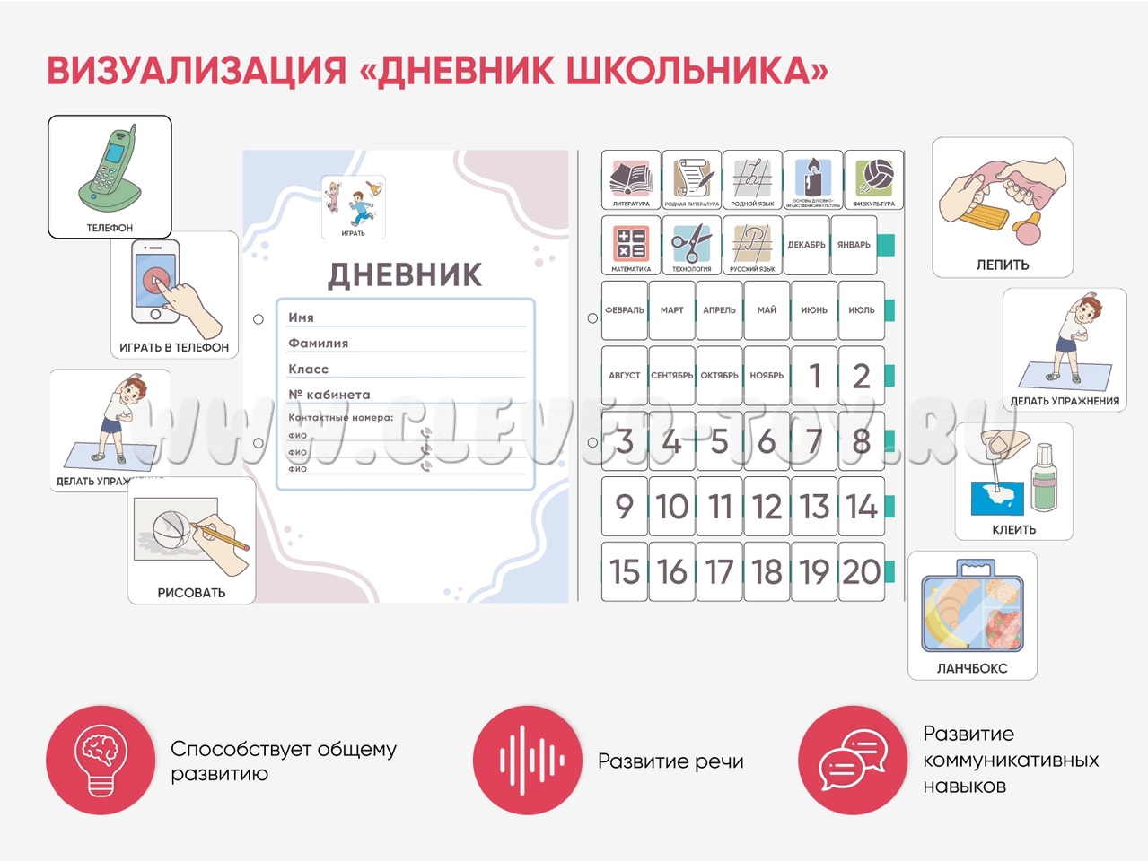 Карточки ПЭКС: визуальные опоры "Дневник школьника"