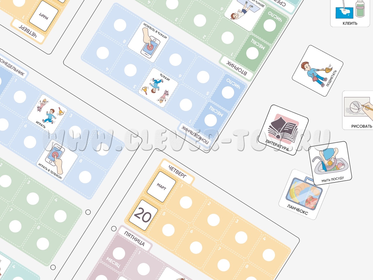 Визуальные опоры для ориентировки ребенка в последовательности действий/заданий в течении занятия или урока. Помогают фиксировать успешность выполнения заданий, поддерживают мотивацию ребенка. Карточки для мальчика и для девочки.