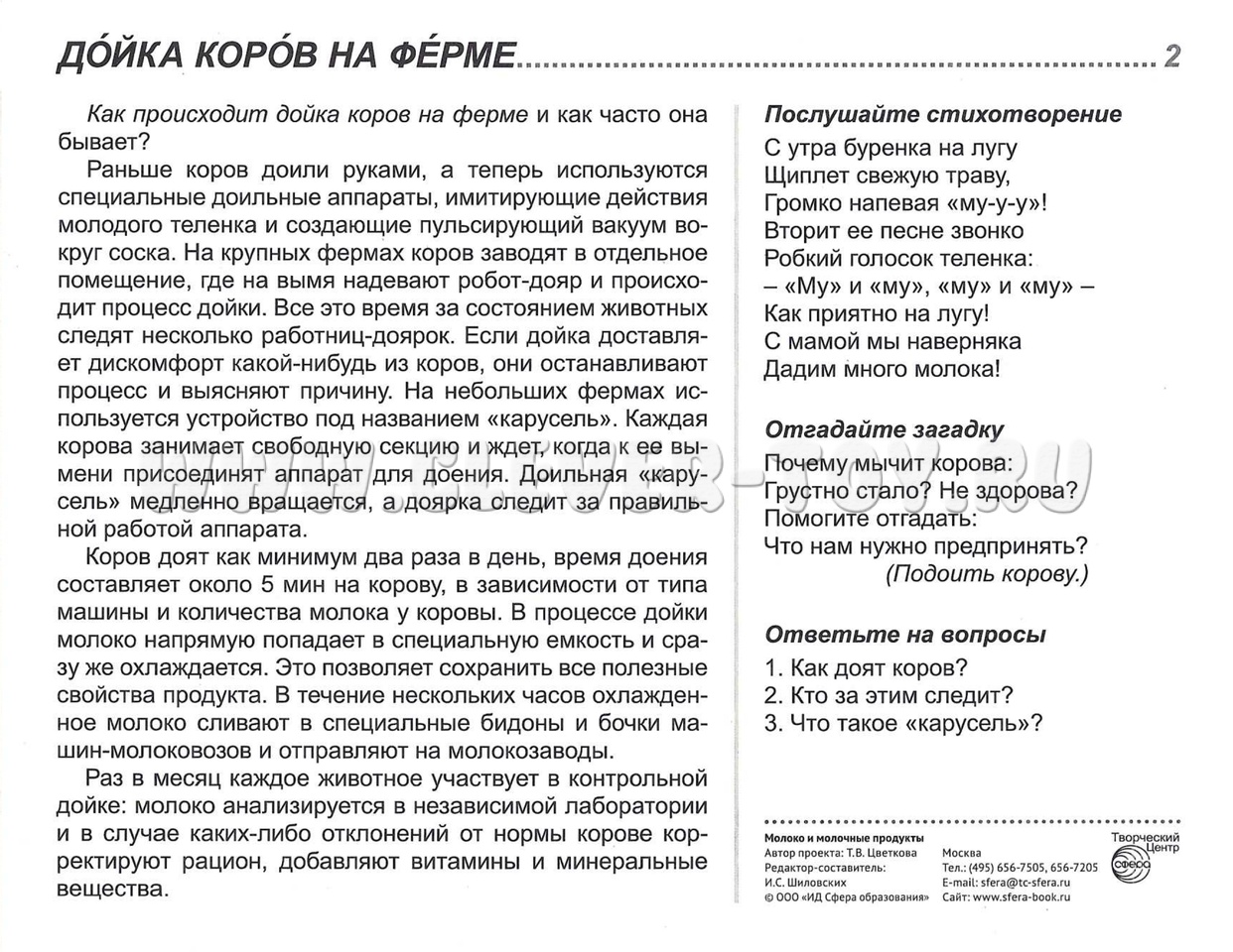 На лицевой стороне каждой карточки дается цветное изображение молочного продукта, на обратной - подробное описание, из которого дети узнают много интересного и поучительного. Для лучшего закрепления материала представлены оригинальные стихотворения и рифмованные загадки по теме, а также вопросы, на которые ребенок ответит после изучения материала или беседы со взрослым. Комплект подходит для индивидуальной и групповой работы, с детьми 5-9 лет.