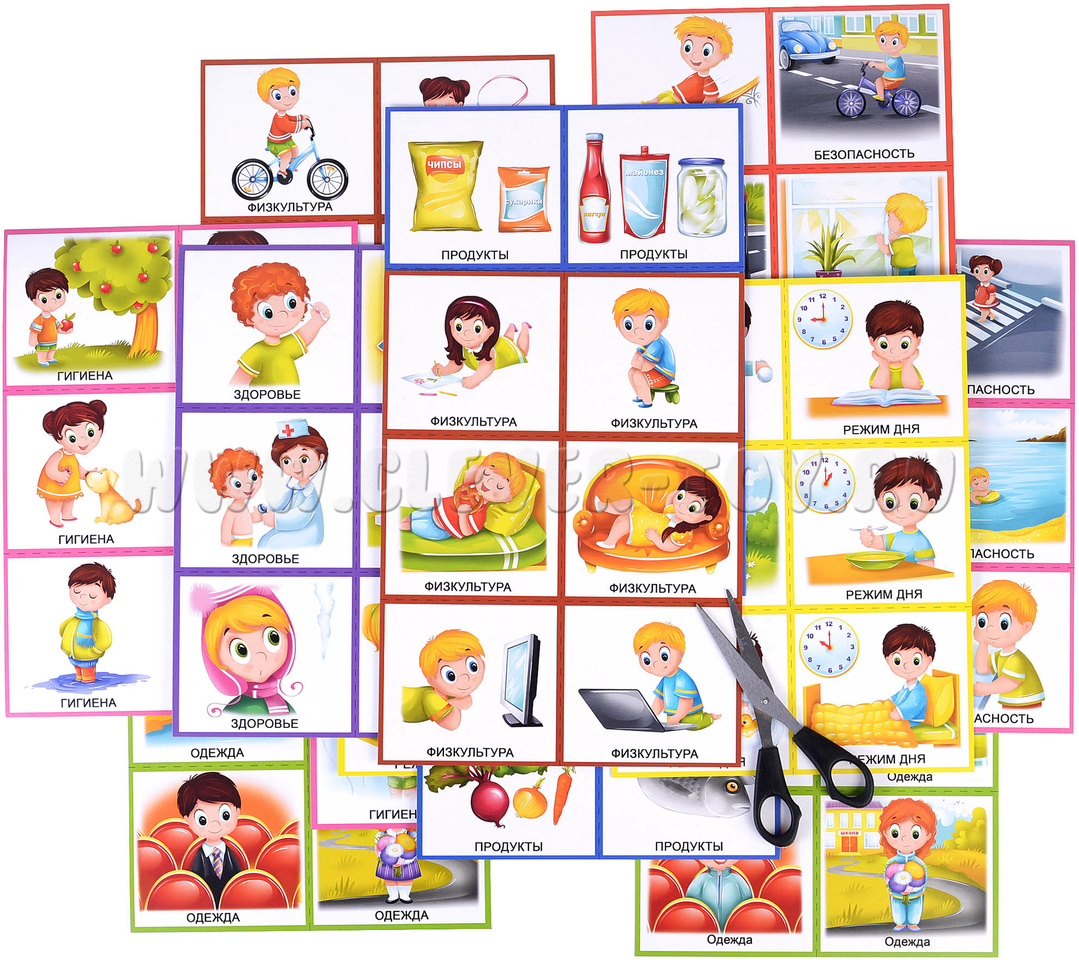Как играть: Разрежьте карты по линиям - получите 84 дидактические карточки. Используйте карточки для игр на запоминание, сортировку, выстраивание последовательности действий. Обсуждайте с ребёнком каждую тему: почему важно мыть руки, делать зарядку, выбирать полезные продукты и т. д. Закрепляйте знания в повседневной жизни переносите игровые ситуации в реальные условия.