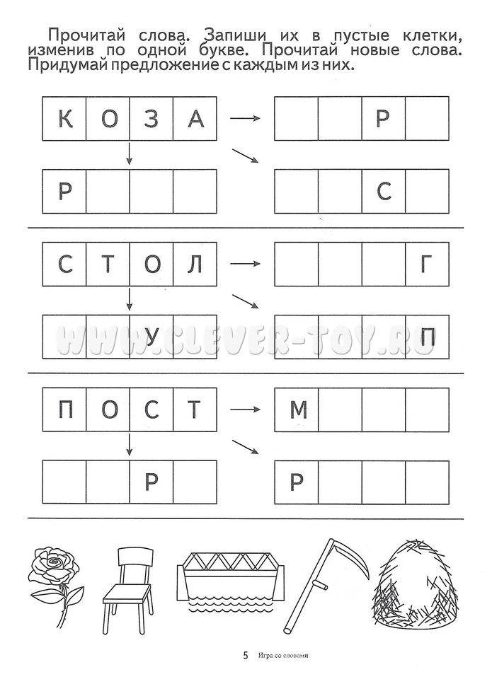 Цветной вкладыш необходимо разрезать по пунктирным линиям. Ребёнку нужно прочитать слово на каждой из карточек по первым буквам картинок.