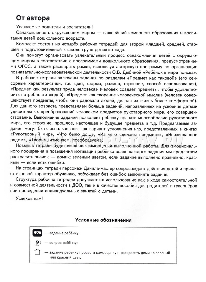 В пособии представлены задания и практикумы по ознакомлению с рукотворным миром, природой и историей происхождения предметов. Плюсы цветных тетрадей О.В. Дыбиной "Я узнаю мир" (серия "Ребенок в мире поиска"):