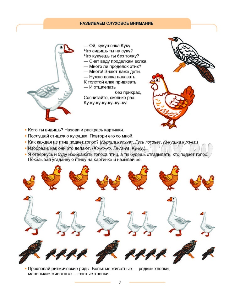 Родители и педагоги получают материал для развития у детей слухового и зрительного внимания, навыков ориентировки в схеме собственного тела, в пространстве, на плоскости, конструктивных навыков, связной речи, навыков слогового анализа слова и анализа предложений.