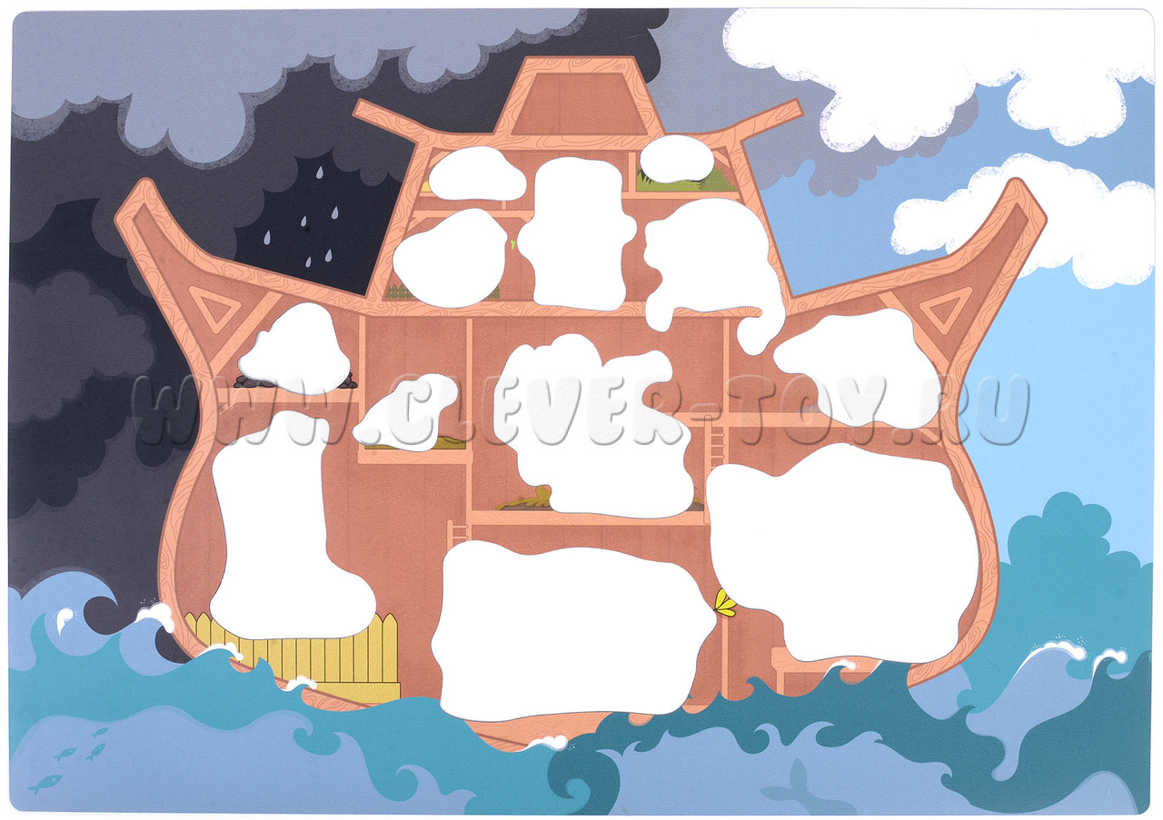 Как играть: Перед вами магнитный Ковчег, вокруг которого сгущаются тучи. Нужно успеть разместить на нём Ноя с семейством, жирафов, волков, оленей, воронов и всех остальных, пока не разразилась гроза.