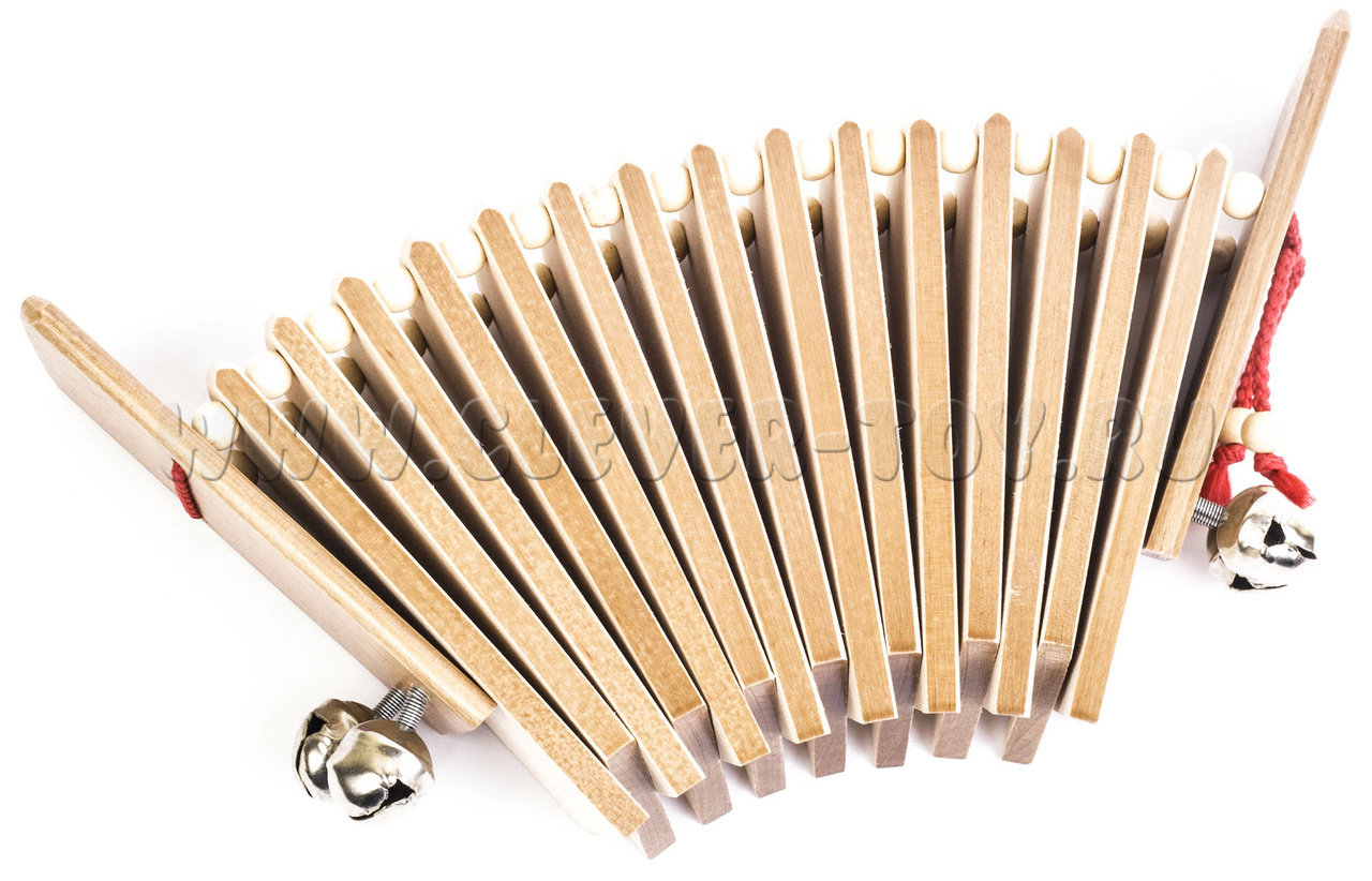 Трещотка пластинчатая "малютка" с бубенцами (дерево тонированное, 2 категория)