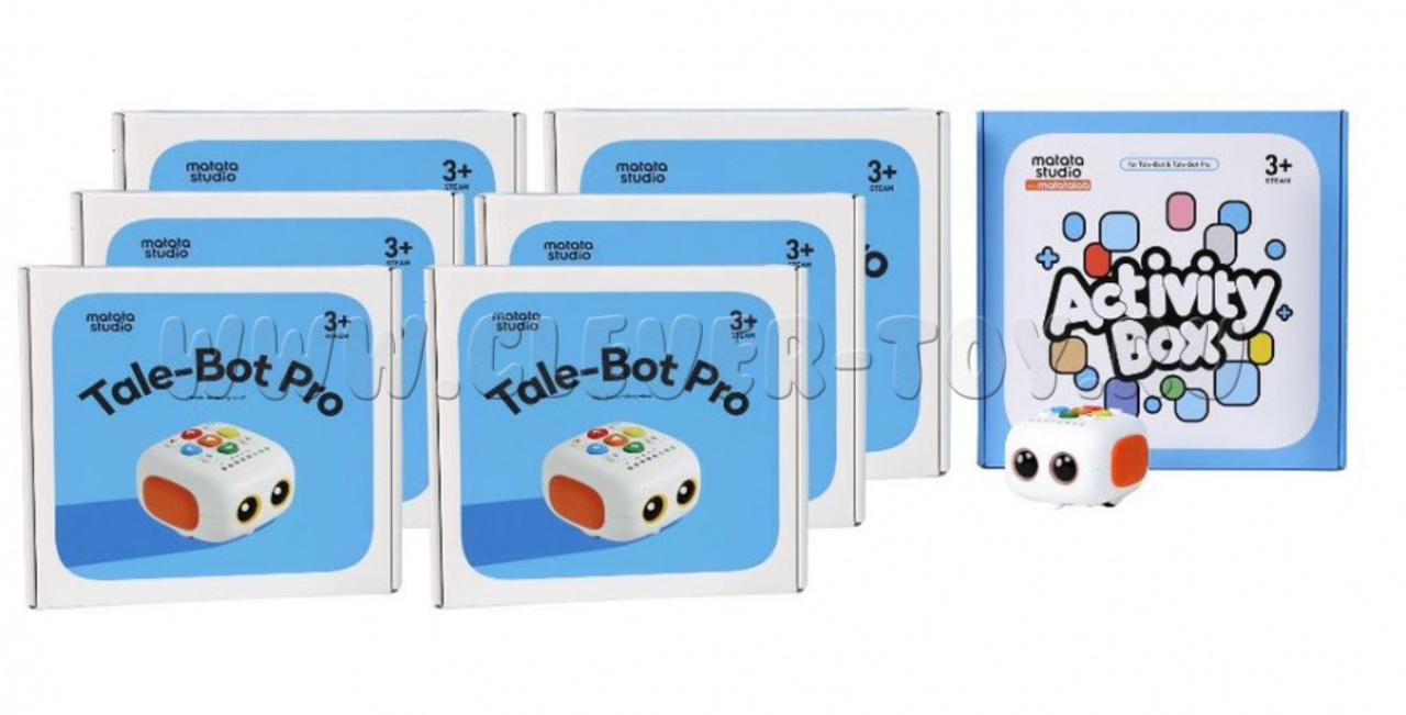 Комплект состоит из 6 роботов MatatalabTale-Bot и набора тематических карт, и стикеров.
