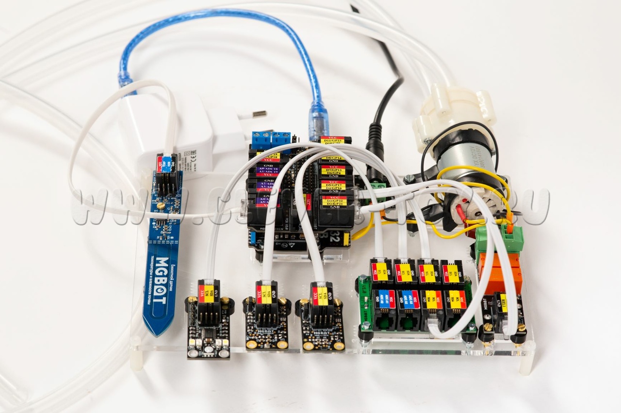 Образовательный набор "Стартовый ЙоТик М4" предназначен для начального уровня обучения по основным понятиям технологии "Интернет вещей" (IoT) в концепции "Умное сельское хозяйство" для изучения базовых функций для выращивания: автополив, умное освещение, мониторинг данных.
